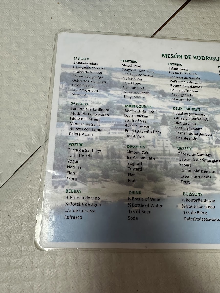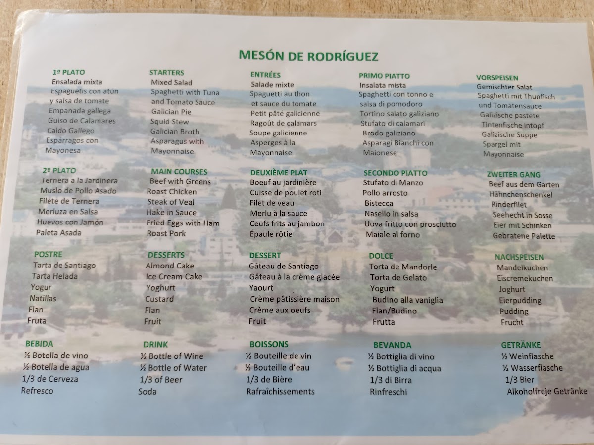 Welcome to Meson Rodriguez, a hidden gem in Portomarín, Lugo, Spain. This lively eatery is a perfect stop for pilgrims and travelers alike, offering a welcoming atmosphere after a long day on the Camino. The menu features a reasonably priced three-course meal with 5 to 6 choices per course, ensuring a delightful dining experience. Each dish is crafted with care, highlighted by the freshly made tortilla that diners rave about. The croquettas jamon are a must-try, boasting a crispy exterior and creamy center that truly embodies comfort food.